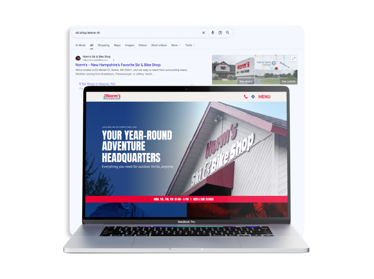 +410% organic traffic YoY in peak season for Norm’s Ski & Bike Shop